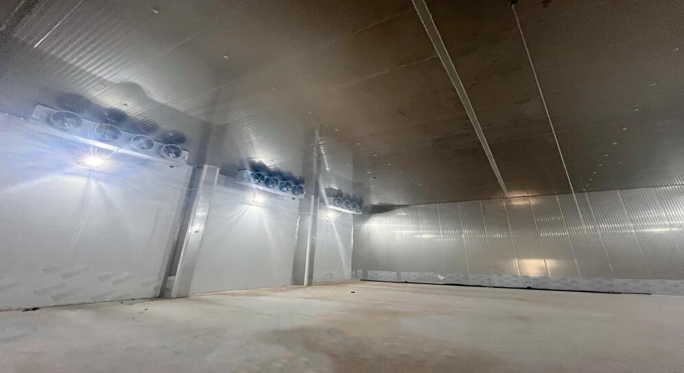 這座冷庫占地約300平方米,高6米。整個(gè)冷庫采用食品級304不銹鋼材料打造,冷庫進(jìn)出采用了電動(dòng)平移門,不僅美觀大方,更具有防腐、防銹性能,延長冷庫的使用壽命。冷庫分兩間溫度分別-25攝氏度肉制品冷凍儲(chǔ)存間和5攝氏度果蔬儲(chǔ)存間。